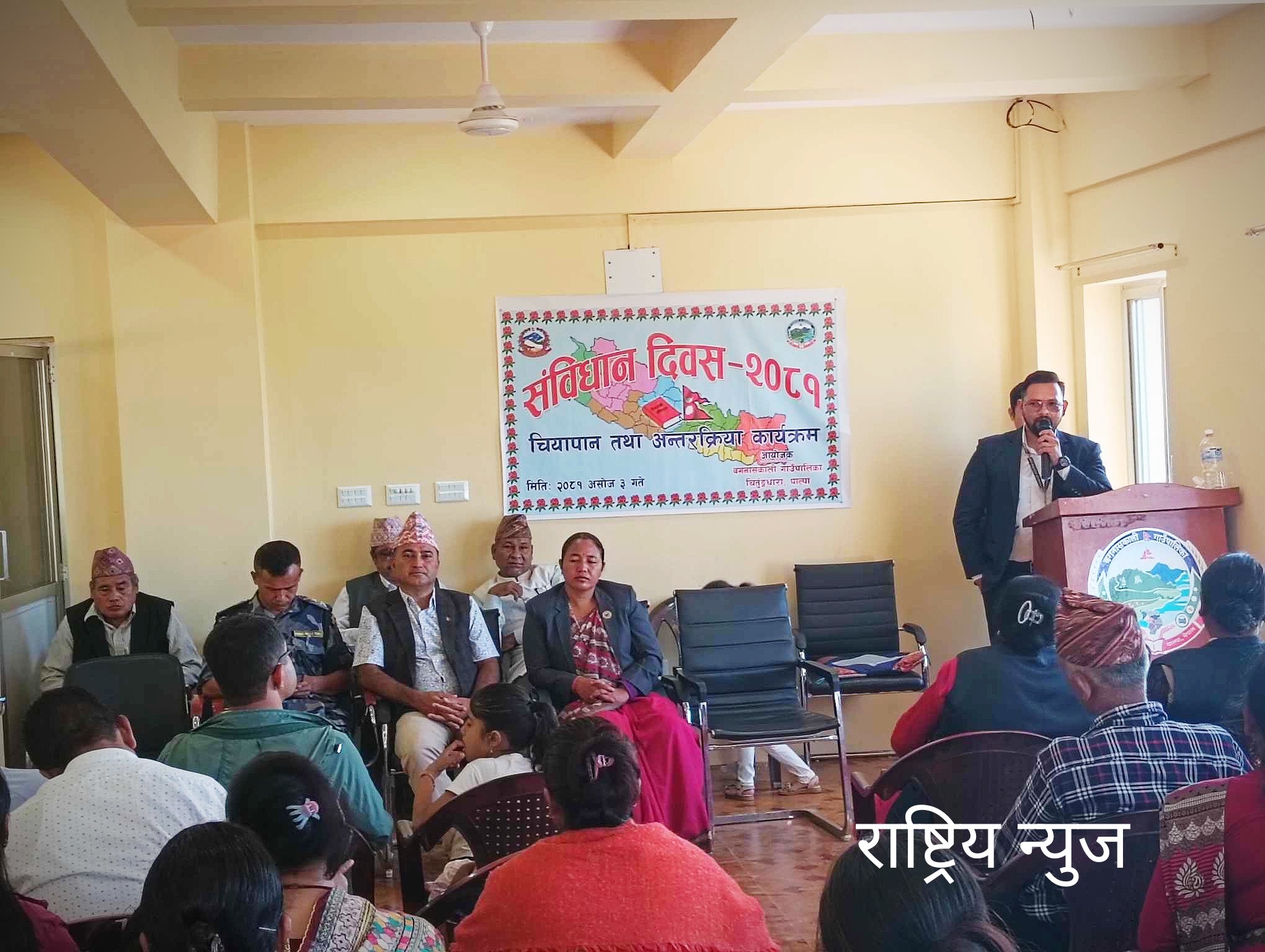 प्रमुख प्रशासकिय अधिकृत खेमराज छिनालले राज्य सत्ता जनतामा निहित गरेको हुदाँ यसकाे पुर्ण रुपमा पालना गर्न अनुरोध गर्नुभयो। गाउँ पालिकाका अध्यक्ष सरस्वती चिदीकाे अध्यक्षता र प्रशासन शाखा प्रमुख सुजन घिमिरेकाे संचालनमा कार्यक्रम सम्पन्न भएको हो ।