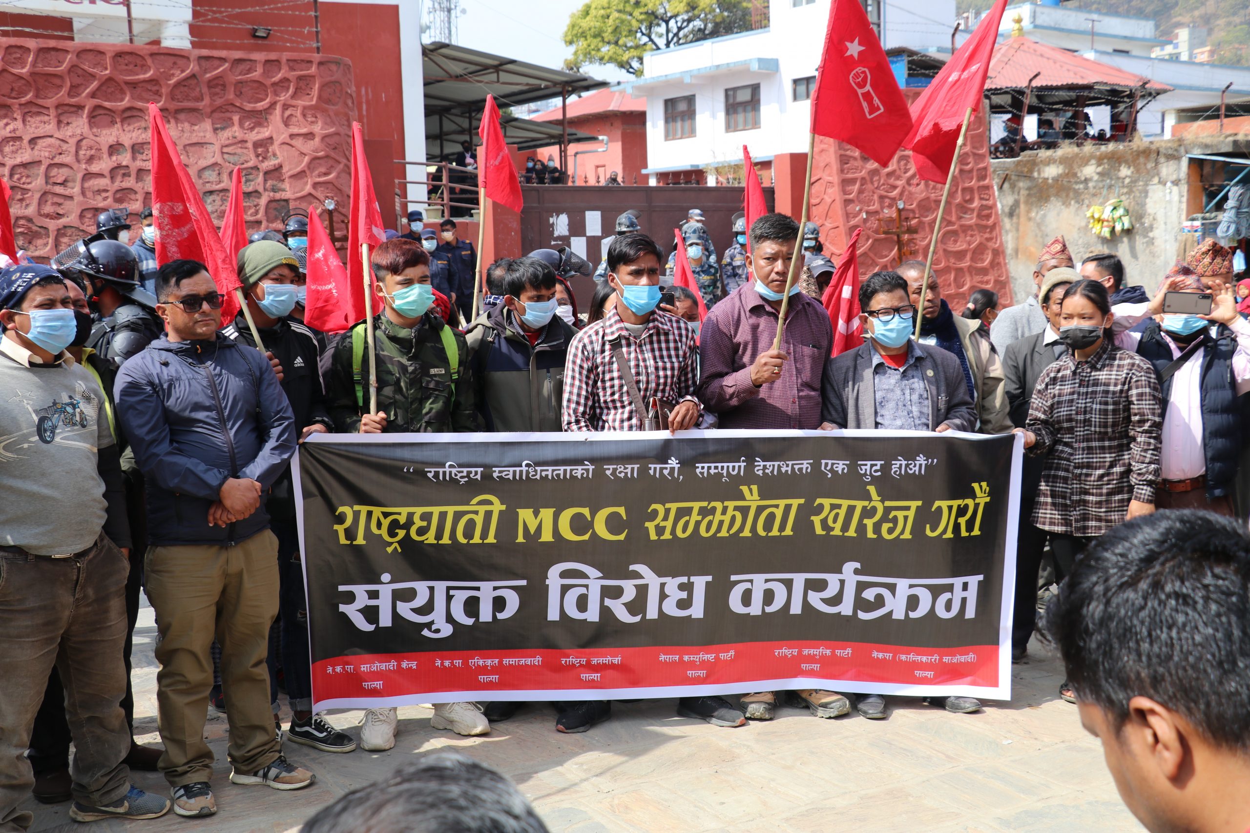 एमसीसी देशका लागि घातक रहेकाे भन्दै छ दलीय माेर्चाले बिराेध प्रदर्शन गरेकाे हाे । प्रदर्शनका क्रममाा उनीहरूले एमसीसी नेपालमा अमेरिकी सेना भित्र्याउने याेजना रहेकाे जिकिर गरेका थिए ।