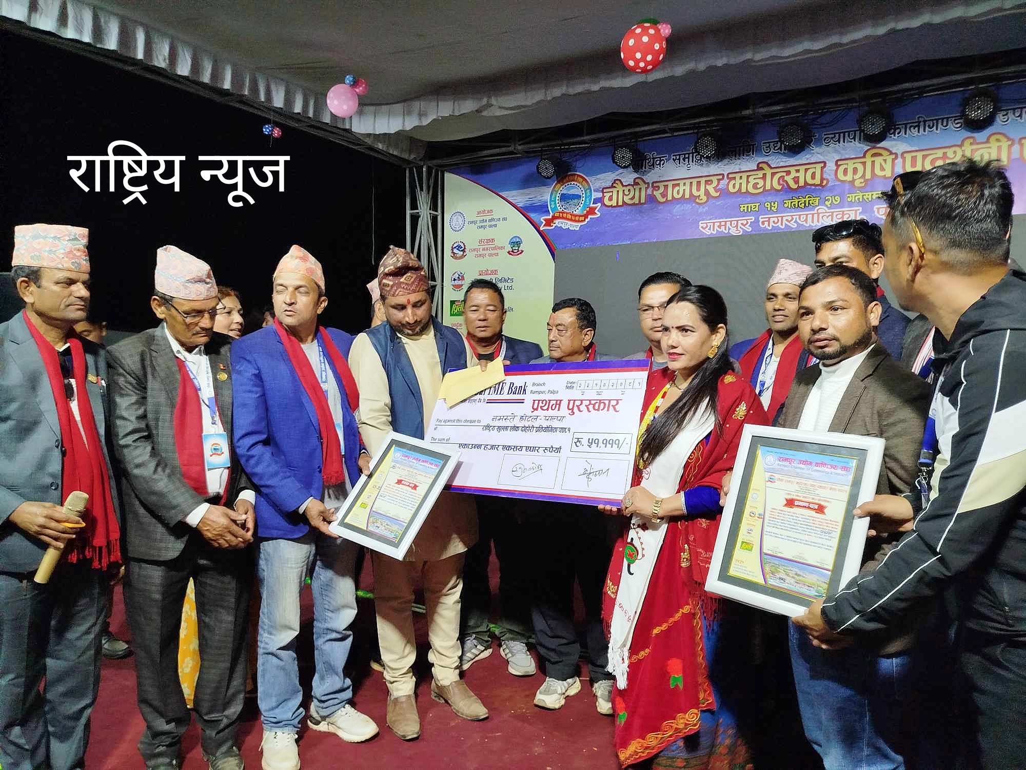 चाैथाे रामपुर महोत्सव तथा व्यापार मेला २०८१को अवसरमा भएको लोकदोहोरी प्रतियोगिताको उपाधिमा नमस्ते होटल पाल्पा समूह प्रथम भएको छ। गत माघ १७ देखि सुरु भएको प्रतियोगिता मंगलबार सम्पन्न भएको हो।राष्ट्रिय लोक तथा दोहोरी गित प्रतिष्ठान पाल्पालाई पछि पार्दै नमस्ते होटेल- पाल्पाले प्रथम पुरस्कार ५१ हजार १ सय ११ रूपैया राशि चेक र प्रमाणपत्र हात पार्न सफल भएकाे हाे ।नमस्ते होटलको प्रतियोगी दिपेन्द्र पौडेल र सीता भण्डारीले प्रतिस्पर्धा गर्नु भएको थियो ।राष्ट्रिय लोक तथा दोहोरी गित प्रतिष्ठान द्वितीय स्थान हासिल गरेको छ। प्रतियोगी सुमन थापा र सिमा सारुले प्रतिनिधित्व गर्नु भएको राष्ट्रिय लोक तथा गित प्रतिष्ठान पाल्पाले द्वितीय स्थान संगै ३१ हजार १सय११ र प्रमाण पत्र हात पार्न सफल भएकाे हो ।