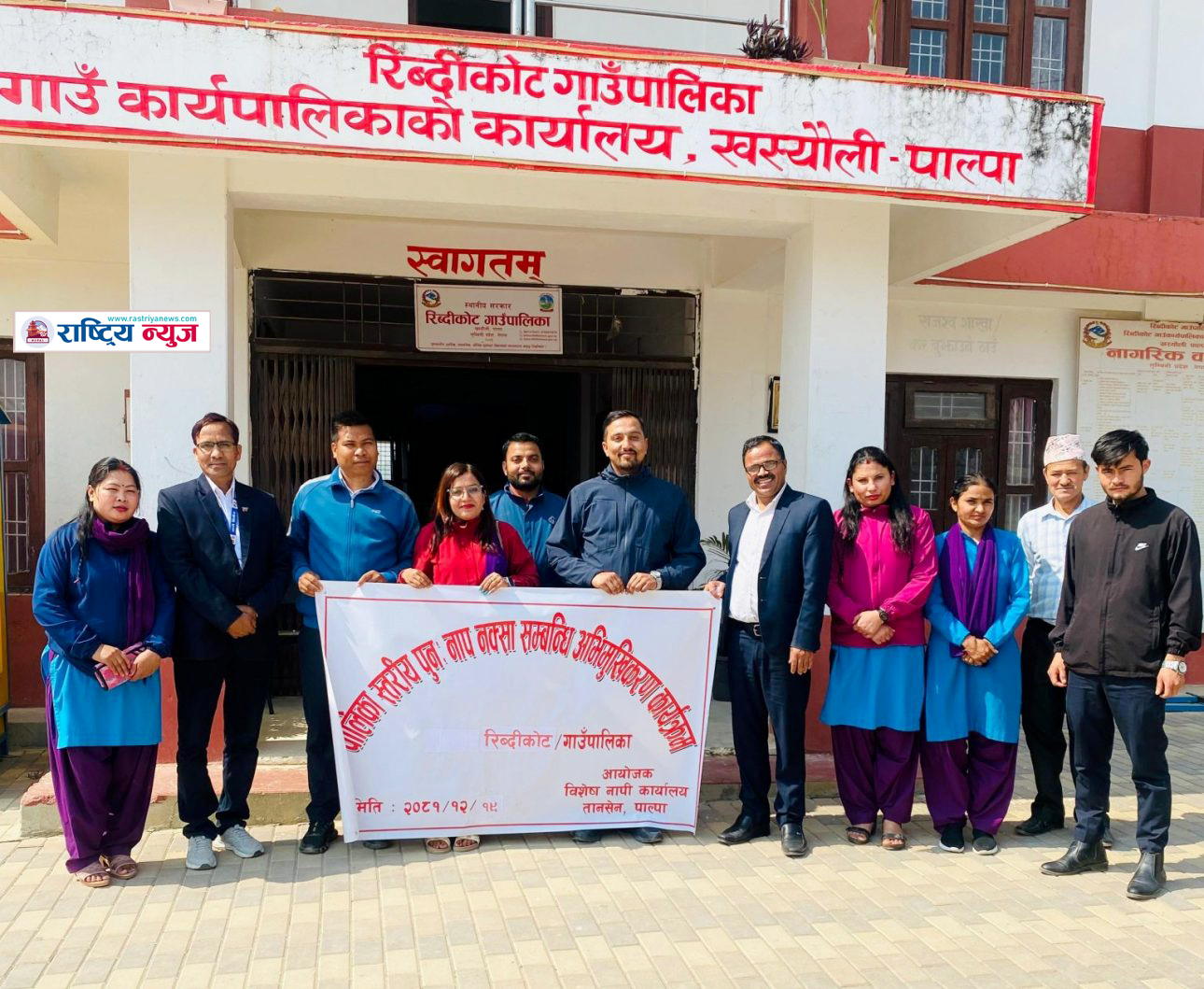 तानसेन– विशेष नापी कार्यालय तानसेन, पाल्पाको आयोजनामा पालिका स्तरीय पुनः नाप नक्सा सम्बन्धी अभिमुखीकरण कार्यक्रम रिब्दिकोट गाउँपालिकामा सम्पन्न भएको छ।