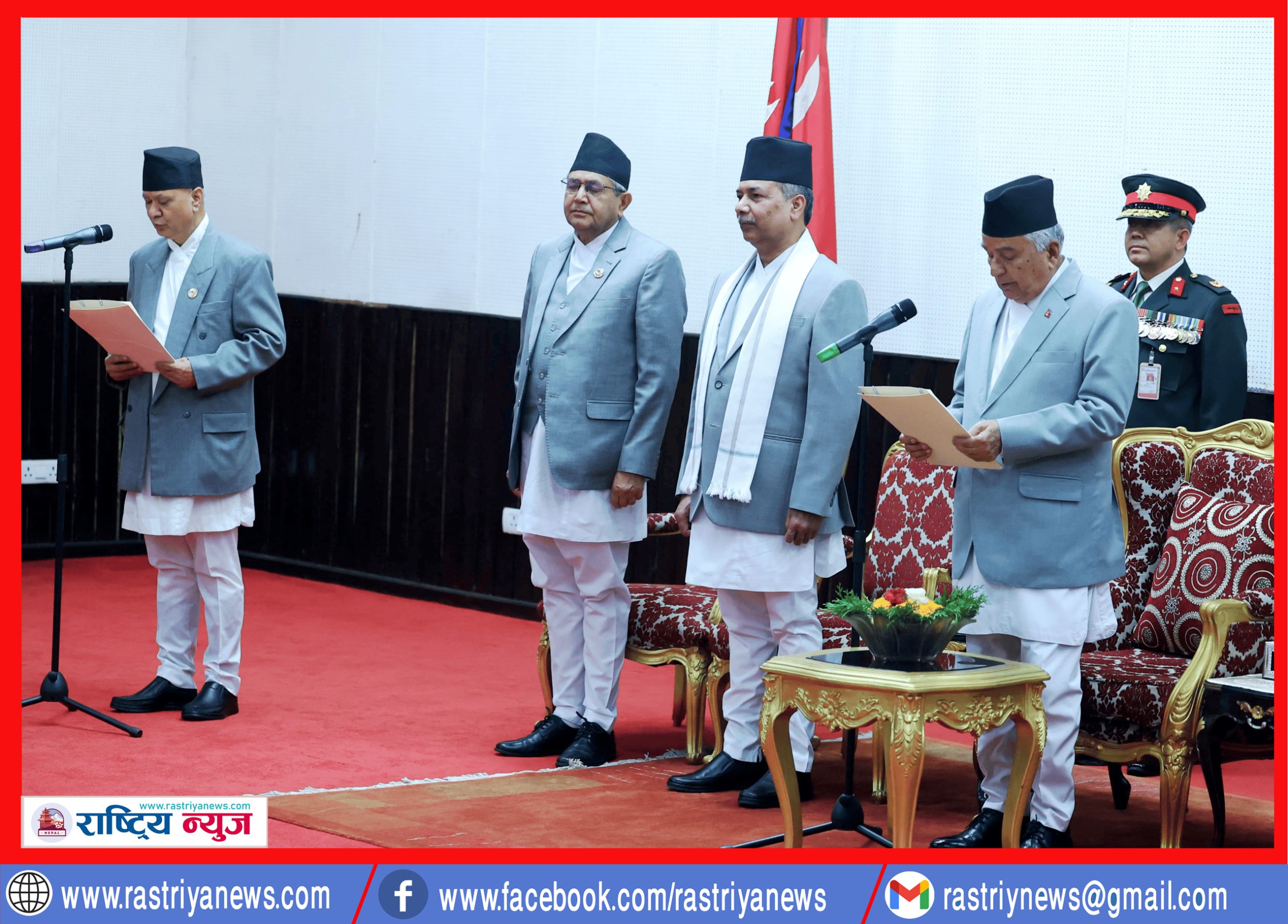 राष्ट्रपति भवन शीतल निवास समारोहमा राष्ट्रपति पौडेल, उपराष्ट्रपति रामसाहाय प्रसाद यादव, प्रधानमन्त्री केपी शर्मा ओली, सभामुख देवराज घिमिरे, राष्ट्रिय सभाका अध्यक्ष नारायण दाहाललगायत संवैधानिक अंगका प्रमुख, मन्त्रिपरिषद् सदस्य, कूटनीतिक निकायका प्रतिनिधि र उच्च पदस्थ कर्मचारीको उपस्थिति थियो ।