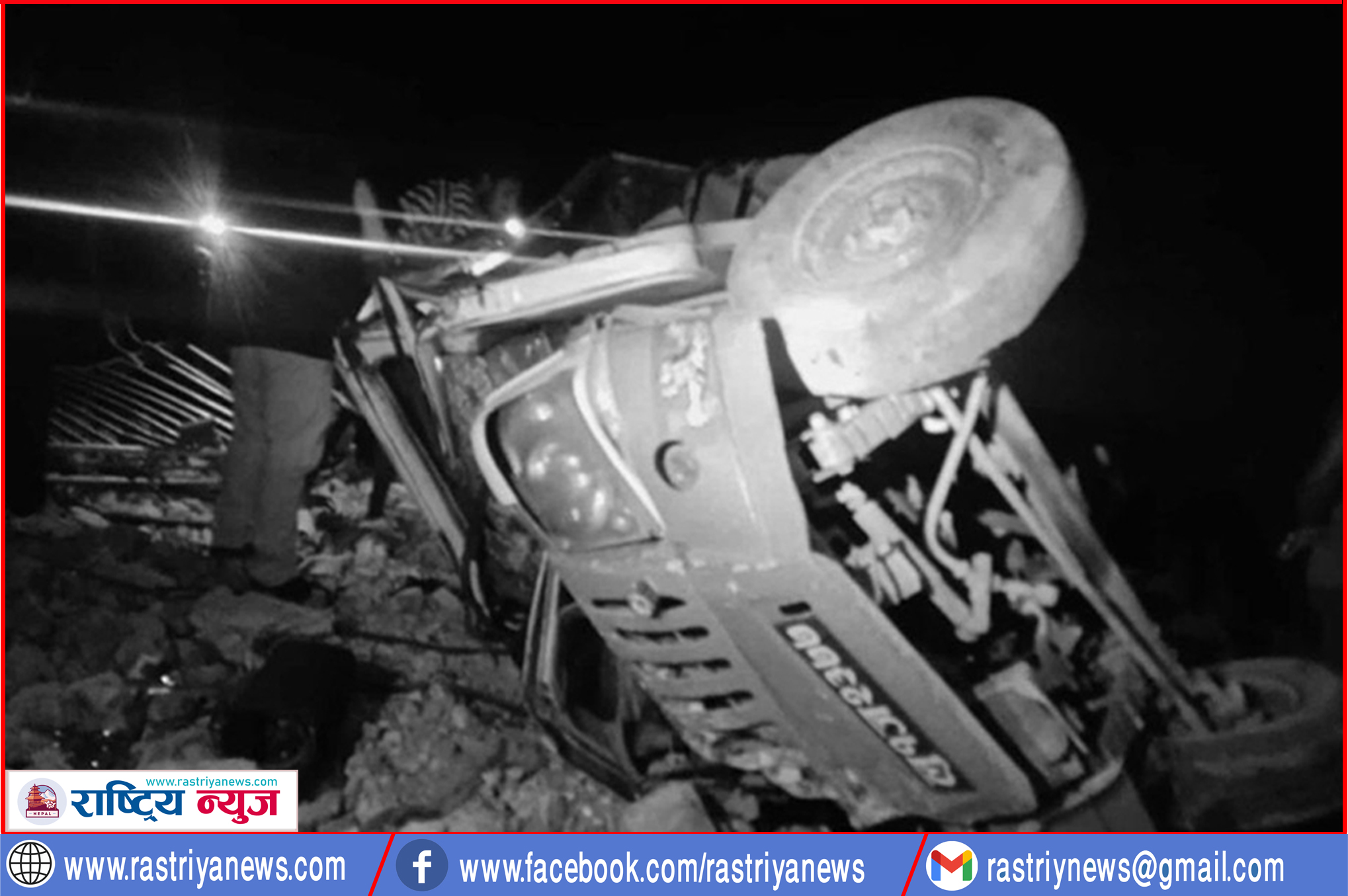रैनादेवी छहरा–१ सिद्देश्वरको असारेस्थित सल्लेरी पाखापानी सामुदायिक वनमा लागेको डढेलो निभाउनका लागि असारे बाट ठुलापोखरी जादै गरोको लु १ ज २३७७ नम्बरको जिप अचानक ब्रेक फेल भएर दुर्घटना भएको जिल्ला प्रहरी कार्यालय पाल्पाका प्रहरी नायव उपरीक्षक सुनिल मल्लले जानकारी दिनुभयो । दुर्घटनामा पाँच जना घाइते भएका मध्ये तीनजनालाई अस्पतालमा ल्याई डाक्टरले चेकजाँच पश्चात मृत घोषणा गरेको र बाँकी दुई जानको उपचार भईरहेको मल्ले बताउनुभयो । घटनाको थप अनुसन्धान भइरहेको छ ।