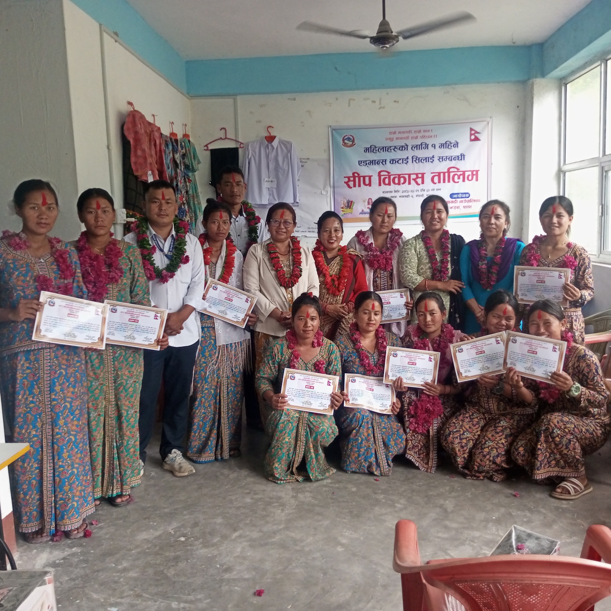 राष्ट्रिय न्युज- माथागढी गाँउपालिकाको आयोजनामा महिलाहरुको लागि १ महिने एडभान्स कटाई सिलाई सिप बिकास तालिम वडा नम्बर ६ गोठादीमा समापन भएको छ । आइतबार आयोजित समापन कार्यक्रममा प्रमुख अथिति एबम गाँउपालिकाकी उपाध्यक्ष बिष्णुमाया लुंङ्गचे र वडा नम्बर ६ का अध्यक्ष यूव बहादुर ठाडाले सहभागीहरुलाई प्रमाणपत्र वितरण गर्नु भएको थियो । भने कार्यक्रम संचालन पुनम चिदीले गर्नु भएको थियो । तालिम समापन कार्यक्रमलाई सम्बोधन गर्दै गाँउपालिकाकी उपाध्यक्ष बिष्णु माया लुंचेले महिला दिदीबहिनीहरुको लागि गाँउपालिकाले बिभिन्न प्रकारको तालिमको ब्यबस्था र आयोजना गरेको छ। त्यसै अन्तर्गत कटाई सिलाई तालिम पनि परेको छ, तसर्थ तालिम लिएर तेत्तिकै नबस्नु होला भन्दै तालिममा सिकेको कुरा ब्यबहारमा उतार्न प्रशिक्षार्थीहरुलाई आग्रह गर्नु भयो। तब मात्रै महिलाहरु आत्मनिर्भर बन्न सक्ने उँहाको भनाई थियो ।