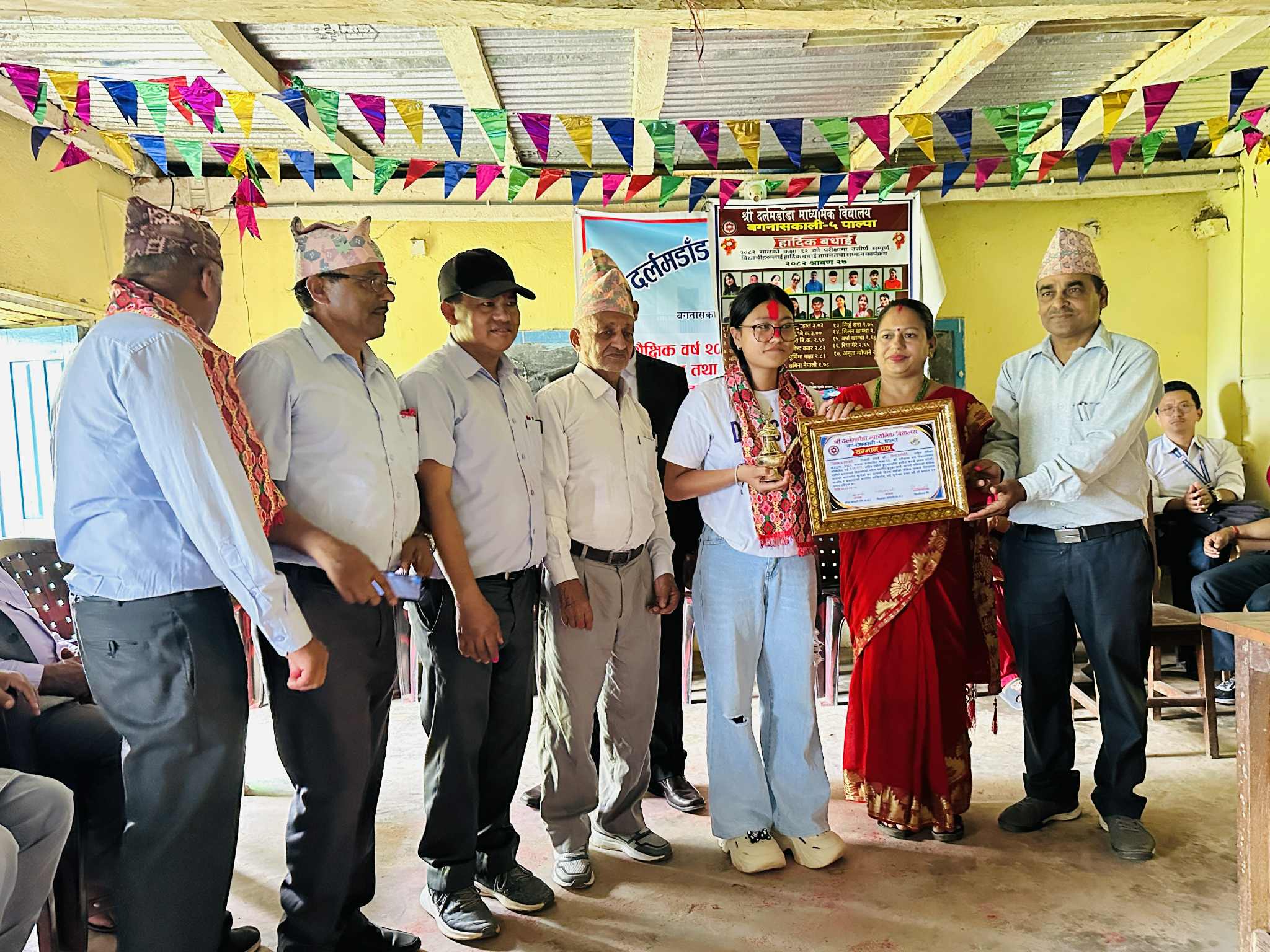 दर्लमडाडा माध्यमिक बिधालयले कक्षा १२ उत्तिर्ण गरेका १७ जना बिद्यार्थीहरु लाई सम्मान गरेको छ । सम्मान कार्यक्रममा ३.६ जि. पि. ए. ल्याइ बगनासकाली गाउँपालिका प्रथम भएकी शिला दर्लामी लगायतलाई खादा साथै प्रमाणपत्रले सम्मान गरिएको थियो ।