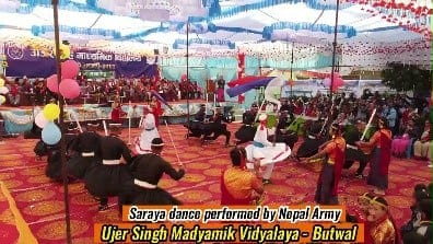 नेपाली लोकसंस्कृतिको विशिष्ट पहिचानमध्ये एक महत्त्वपूर्ण संस्कृतिक धरोहर सरायँ हो । “विशेष पर्वका दिन मन्दिरभित्रका खुकुरी, तरवार, खुँडा, खड्ग र लठ्ठी आदि हतियार हातमा लिएर नचाउँदै, घुमाउदै एक आपसमा ठोक्काउँदै बाजाका तालमा नाच्दै देखाइने अर्घाखाँचीभेगका जिल्लाको एक प्रसिद्ध जात्रा” हो भनेर नेपाली बृहत् शब्दकोशले उल्लेख गरेको छ । नृत्यकलाको विषय अन्तरगत सरायँ पनि एक महत्त्वपूर्ण नाँच हो भनिएको छ । यसको प्रचलन विशेष गरी अर्घाखाँची, गुल्मी, पूर्वी प्यूठान र पश्चिम पाल्पाका क्षेत्रमा बढी प्रचलनमा रहेको अवस्था छ । साथै यिनै स्थानबाट बसाइसराई गरी वा नगरी शहरी क्षेत्रमा रहेका संस्कृतिप्रेमी महानुभावहरूको विशेष सक्रियतामा रुपन्देही (बुटवल), कपिलवस्तु र काठमाडौजस्ता स्थानमा प्रत्येक वर्ष सरायँ लगाइदै आएको छ । यो एक पर्व विशेष नाँच हो । ऐतिहासिक युद्धको विजयपश्चात युद्धपोत सामग्रीको कलात्मक रूपमा प्रस्तुत गरिने नाँच नै सरायँ हो । बडादशैंका शुअवसरमा नवमी तथा जमरा र टिका ग्रहण गरेपछि कोजाग्रत पूर्णिमासम्म विभिन्न शक्तिपीठहरू (कोटघर) वा ऐतिहासिक गढी तथा किल्लाहरूका अग्रस्थलमा भेला भई हात हतियार तथा ढालहरू प्रदर्शन गरिन्छ । एक आपसमा बडो हर्षोल्लासका साथमा हातहतियार ठोक्काउँदै गोलो घेरामा नौमती बाजाको तालमा नाँचिन्छ । नेपाली सेनाले यसलाई अझ व्यवस्थित रूपमा प्रस्तुत गर्ने गरेको पनि पाइन्छ ।