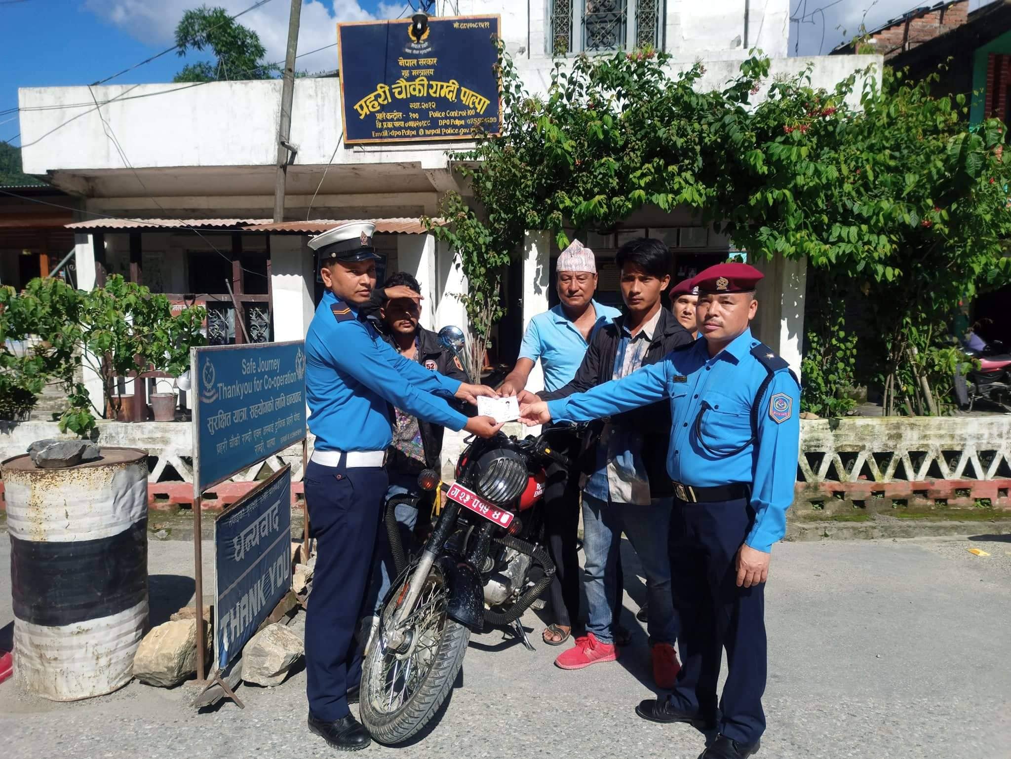 जिल्ला प्रहरी कार्यालय पाल्पाले हराएको मोटर साइकल फेला पारी सम्बन्धीत धनीलाई वुझाएको छ ।