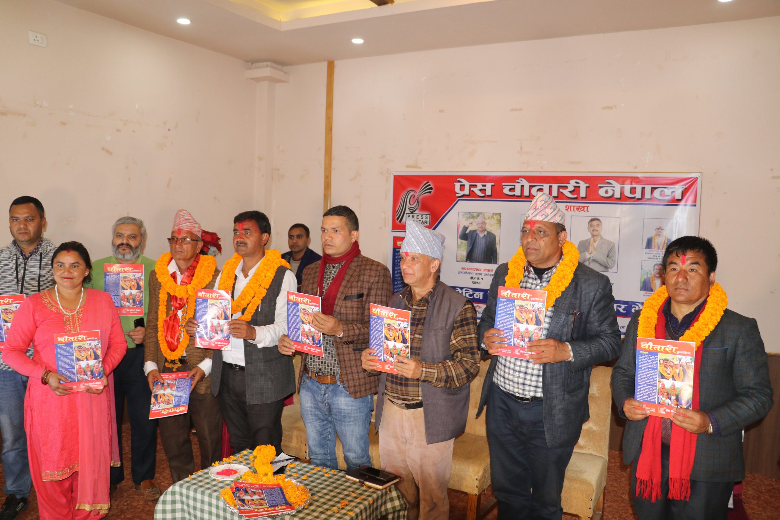 प्रेस चौतारी पाल्पाले प्रकाशन गरेको पाल्पा प्रेस चौतारी बुलेटिनको बिमोचन तथा उम्मेदवारसँग अन्र्तक्रिया कार्यक्रम तानसेनमा सम्पन्न भएको छ । नेकपा एमालेको तर्फबाट पाल्पामा उम्मेदवार रहनुभएका दुई प्रतिनिधिसभा सदस्य र ४ जना प्रदेशसभा सदस्यका उम्मेदवारहरुको जीवनी, राजनीतिक यात्रा, प्रतिबद्धता सहित प्रेस चौतारीको इतिहास तथा विभिन्न विषयहरुलाई समेटेर प्रेस चौतारीले बुलेटिन प्रकाशन गरेको हो । बुलेटिनको प्रमुख अतिथि नेकपा एमालेका पोलिट्व्युरो सदस्य एवम् क्षेत्र नं. २ बाट प्रतिनिधिसभा सदस्यका उम्मेदवार ठाकुर गैरे, क्षेत्र नं. १ का प्रतिनिधिसभा सदस्य उम्मेदवार नारायणप्रसाद आचार्य, नेकपा एमाले पाल्पाका अध्यक्ष धनेन्द्रराज घिमिरे, क्षेत्र नं. १ (२)का प्रदेशसभा सदस्य उम्मेदवार खेम बहादुर सारु, क्षेत्र नं. २ (२) का प्रदेशसभा सदस्य परशुराम भट्टराई, संविधानसभा सदस्य नारायणी शर्मा, पत्रकार महासंघ पाल्पाका अध्यक्ष रेखीराम राना, प्रेस चौतारी पाल्पाका अध्यक्ष कृष्ण कार्की लगायतले संयुक्त रुपमा बिमोचन गर्नुभयो । कार्यक्रममा प्रमुख अतिथि गैरेले प्रेस चौतारीले प्रकाशन गरेको उक्त बुलेटिनले पार्टीका उम्मेदवारको जीवनीसँगै प्रतिबद्धताहरुलाई समेत राम्रोसँग समेटेको बताउनुभयो । उहाँले एमाले पार्टी र अभियानहरुलाई पाल्पाली सञ्चारकर्मीहरुले राम्रो महत्व दिई प्रकाशन प्रसारण गर्नुभएको भन्दै धन्यवाद ब्यक्त गर्नुभयो । क्षेत्र नं १ का प्रतिनिधिसभा सदस्य उम्मेदवार नारायणप्रसाद आचार्यले घरदैलो तथा भेटघाटका क्रममा मतदाताहरुमा उत्साह देखिएको र मतदाताहरु सूर्यमा मतदान गर्न आतुर रहनुभएको बताउनुभयो । क्षेत्र नं. १ (२)का प्रदेशसभा सदस्य उम्मेदवार खेम बहादुर सारुले मतदाताहरुले दिनुभएको उत्साहले आफूहरुमा अझ अगाडि बढ्ने प्रेरणा मिलेको बताउनुभयो क्षेत्र नं. २ (२)का प्रदेशसभा सदस्यका उम्मेदवार परशुराम भट्टराइले पनि मतदाताहरुमा उत्साह रहेको बताउनुभयो । कार्यक्रममा नेकपा एमाले पाल्पाका अध्यक्ष धनेन्द्रराज घिमिरे, नेपाल पत्रकार महासंघ पाल्पाका अध्यक्ष रेखीराम राना, प्रेस चौतारी केन्द्रीय सदस्य मिलन बिश्वकर्मा, प्रेस चौतारी केन्द्रीय अनुशासन आयोगका उपाध्यक्ष भगवान भण्डारी लगायतले शुभकामना मन्तव्य राख्नुभएको थियो । प्रेस चौतारी पाल्पाका सचिव नारायण न्यौपानेको सञ्चालन र अध्यक्ष कृष्ण कार्कीको अध्यक्षतामा कार्यक्रम चलेको थियो ।