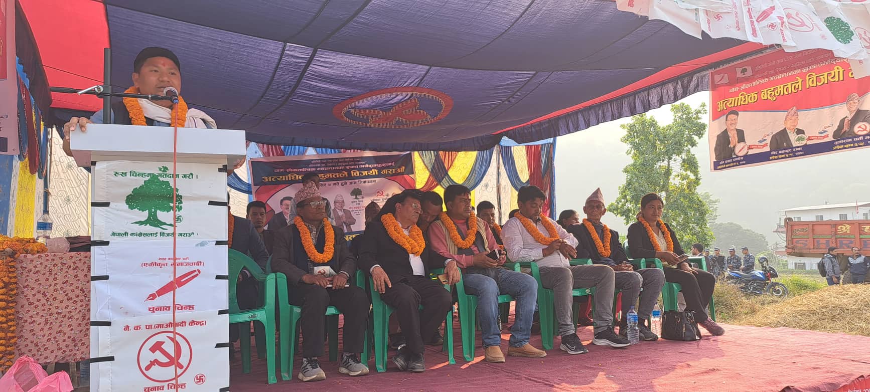 प्रदेश सभा (२) २ का उम्मेद्वार तुलाराम घर्तीले पनि तिनाउको सत्वती र दोभान क्षेत्रको समग्र आर्थिक र पूर्वाधार विकासमा आफूले काम गरेको बताउँदै आगामी दिनमा समेत निरन्तरता दिने भएकाले गठबन्धनलाई विजयी बनाउनुपर्ने बताए । उनले झिगामारा, हरियाली गाउँ हुँदै अर्घाखाँची जोड्ने सडकको स्तरन्नोति गर्ने, तिनाउ गाउँपालिकाको पहुँचमार्ग निर्माणका लागि आवश्यक बजेट विनियोज गर्न पहल गर्ने बताए । उनले पहुँचमार्ग निर्माणका लागि आफुुहरुले प्रदेश सरकारबाट पटक–पटक बजेट विनियोजन गरे पनि तिनाउ गाउँपालिकाका निवर्तमान अध्यक्ष तथा प्रदेश सदस्यका उम्मेदवार ओम घर्तीले राजनीतिक प्रतिशोध राखेर काम नै नगरी बजेट फ्रिज गर्ने गरेका कारण काम हुन नसकेको आरोप लागाए । कार्यक्रममा गठबन्धनका जिल्ला संयोजक तथा नेपाली काँग्रेस पाल्पाका सभापति हिमालदत्त श्रेष्ठ, प्रतिनिधि सभा सदस्य समानुुपातिकका उम्मेदवार सन्दीप राना, प्रदेश समानुपातिक सदस्यका उम्मेदवार रितु श्रेष्ठ, तारा रसाइली, लक्ष्मी पाठक, माओवादी केन्द्रका केन्दीय सदस्यहरु चक्रवियुु थापा, पुरन केसी, नेपाली काँग्रेसका लुुम्बिनी प्रदेश सदस्य महेन्द्र पाण्डे, काँग्रेस नेता प्रेम प्रसाद पाण्डे, एकिकृत समाजवादीका नेता अरव्रिन्द पाण्डे, माओवादीका नेता अमर प्रधान, माओवादी केन्द्रका जिल्ला सचिवालय सदस्य दिनेश जिसी, तिनाउ गाउँपालिका पूर्व प्रवक्ता राजेश श्रेष्ठ, दुुर्गाबहादुर थापा,हरी पाण्डे लगायतका नेताहरुले तिनाउ र समग्र पाल्पा जिल्लाको विकासको लागि गठबन्धनका उम्मेदवारलाई विजयी बनाउनुपर्ने बताए ।