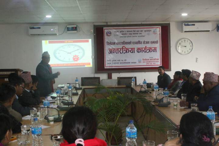 रुपन्देहीको तिलोत्तमा नगरपालिकामा आवधिक योजना निर्माण सम्बन्धी सुझाव संकलन तथा विकासका प्राथमिकता बारे अन्तरक्रिया कार्यक्रम सम्पन्न भएको छ ।
