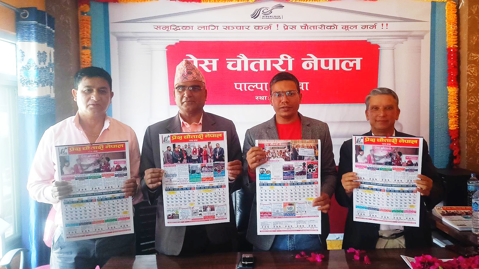 पाल्पा,चैत्र -३० प्रेस चौतारी नेपाल पाल्पाले नव बर्ष २०८० को अवसरमा शुभकामना आदान–प्रदान गर्दै चौतारी भित्तेपात्रो विमोचन गरेको छ ।नेकपा एमाले पाल्पाका अध्यक्ष धनेन्द्रराज घिमिरे, जिल्ला समन्वय समितिका प्रमुख टंकनाथ खनाल, पत्रकार महासंघ पाल्पाका उपाध्यक्ष भरत शर्मा र चौतारी पाल्पाका अध्यक्ष कृष्ण कार्कीले संयुक्त रुपमा भित्तेपात्रोको विमोचन गरेका हुन् ।