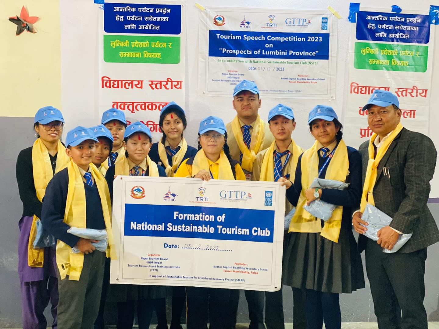 पाल्पा-पर्यटनको महत्वलाई दृष्टिगत गरी तानसेन नगरपालिका-२ मेहलधारा.स्थित बेथल इङ्गलिस बोर्डिङ्ग स्कूलमा विद्यालयस्तरीय वक्तृत्वकला प्रतियोगिता गरिएको छ । नेपाल टुरिज्म बोर्ड, टुरिज्म रिसर्च एण्ड ट्रेनिङ इन्स्टिच्युट (टिआरटिआइ), युएनडिपी र जीटिटिपीको सहकार्यमा आइतवार ‘लुम्बिनी प्रदेशको पर्यटन र सम्भावना’ विषयक वक्तृत्वकला प्रतियोगिता गरिएको हो ।
