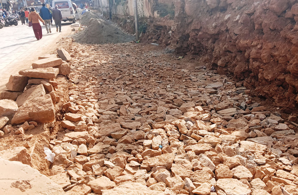 घरटहरा हटाई समयमा नै ढुङ्गा बिछाउने काम नगर्दा ऐतिहासिक बजार क्षेत्र कुरूप देखिएको छ ।