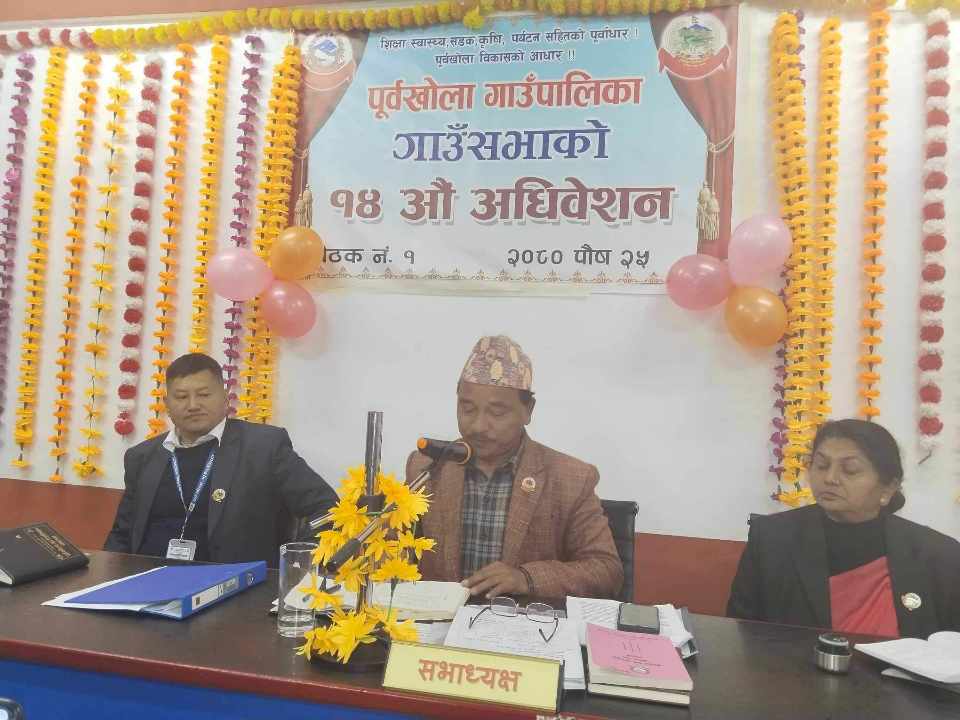 पाल्पा–जिल्लाको पुर्वखोला गाउँपालिकाको १४ औँ गाउँसभा सम्पन्न भएको छ। गाउँसभामा गाउँपालिकाका अध्यक्ष नुन बहादुर थापाले कार्यपालिकाको निर्णय अनुमोदन प्रस्ताव र नितिगत निर्णय प्रस्ताव पेश गर्नु भयो । गाउँपालिकाका उपाध्यक्ष भागिरथि भट्टराईले योजना संशोधन तथा रकमान्तर थप योजना प्रस्ताव पेश गर्नु भयो । प्रशासकीय प्रमुख सुन्दर प्रसाद श्रेष्ठले अर्धवार्षिकिय प्रगति प्रतिवेदन प्रस्तुत गर्नु भयो ।
