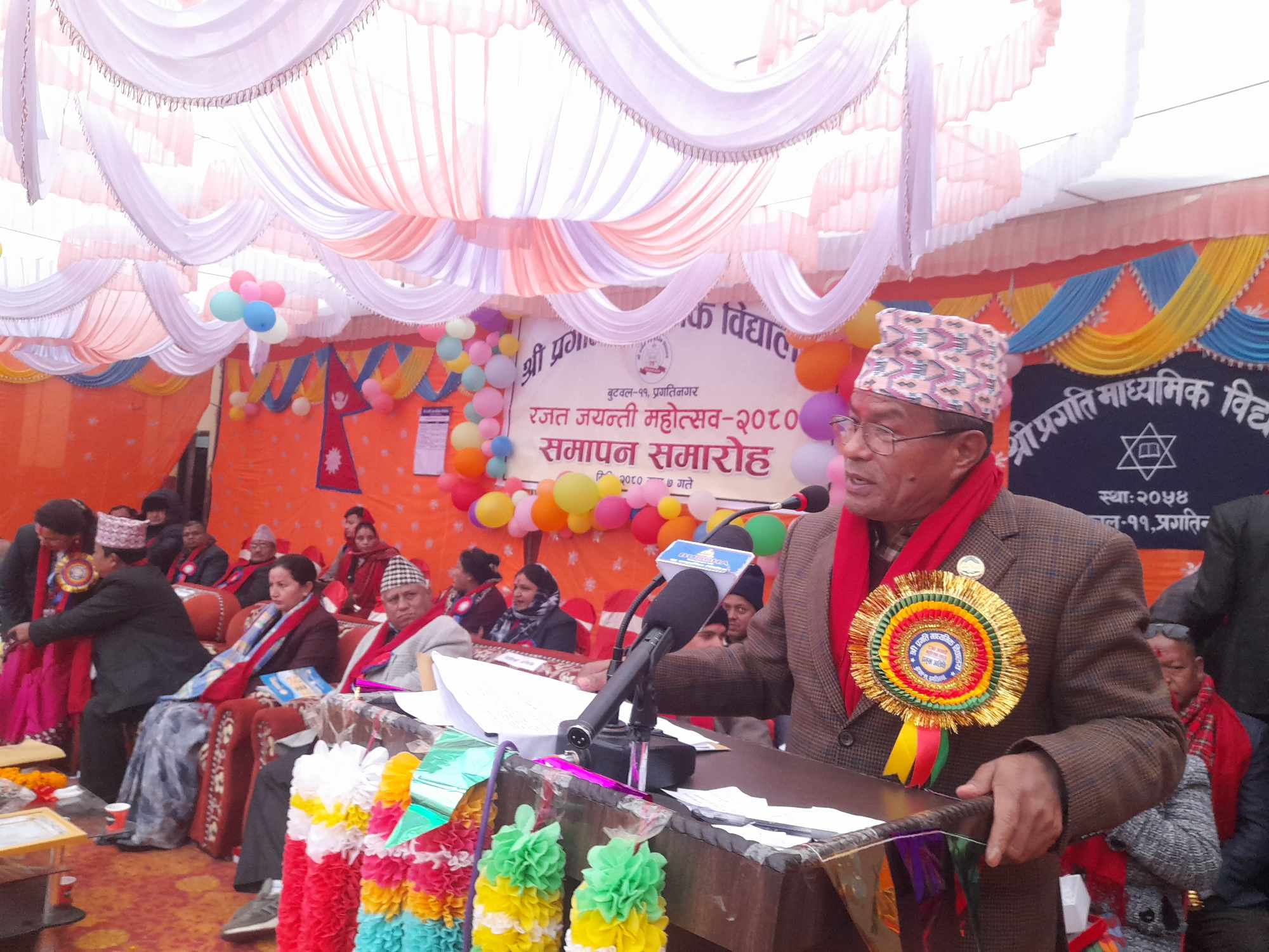 यस्तै प्रदेश सभाका सदस्य जमुना ढकालले बुटवल वडा नं। ११ सबै भन्दा बढि मतदाता भएको वडा भएपनि शिक्षा र विकासले पछाडी परेको गुनाशो पोख्नुभयो । प्रगती माविमा देखिएको समस्या सामाधानको लागि प्रदेश सकारको तर्फबाट सहयोग गर्ने उहाँले बताउनुभयो । प्रगत माध्यमिक विद्यालयका अध्यक्ष जित बहादुर मल्लले विद्यालय २५ वर्ष प्रवेशको अवसरमा सप्ताहा ब्यापी कार्यक्रमको आयोजना गर्दै रजत महोत्सव संचालन गरिएको जानकारी दिनुभयो ।