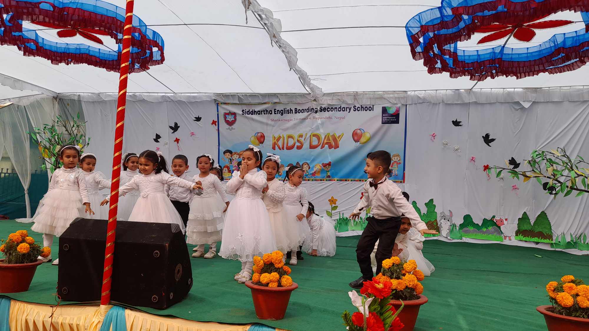 रुपन्देहीको तिलोत्तमा-४ स्थित सिद्धार्थ ईङ्गलिस बोर्डिङ स्कुलले शुक्रबार ‘किड्स डे’ मनाएको छ । नर्सरीदेखि कक्षा ३ सम्म अध्ययन गर्ने विद्यार्थीहरुको प्रतिभा प्रस्फुटन गर्ने लक्ष्यसहित कार्यक्रमको आयोजना गरिएको विद्यालयका सह(प्राचार्य रमेश प्रसाद बस्यालले जानकारी दिए ।