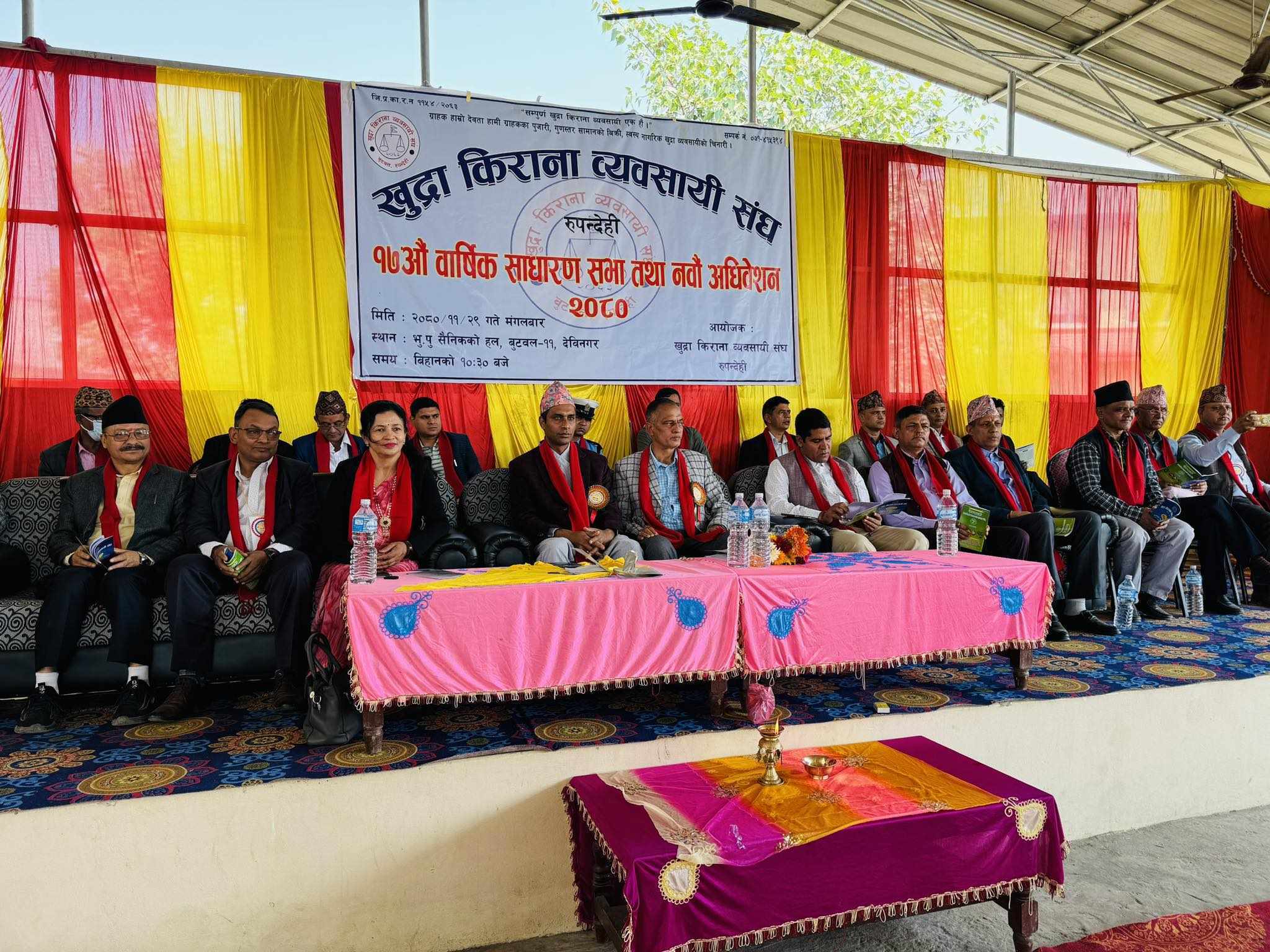 खुद्रा किराना व्यवसायी संघ रुपन्देहीको १७ औं साधारणसभा तथा नवौं अधिवेशनकाे अवसरमा आयोजित कार्यक्रममा बोल्ने बक्ताहरुले दर्ताबिहिन ब्यवसायीलाई करको मापदण्डमा ल्याउन आग्रह गर्दै उपमहानगरपालिकाबाट नियमित अनुगमन गर्नुपर्ने बताए।
