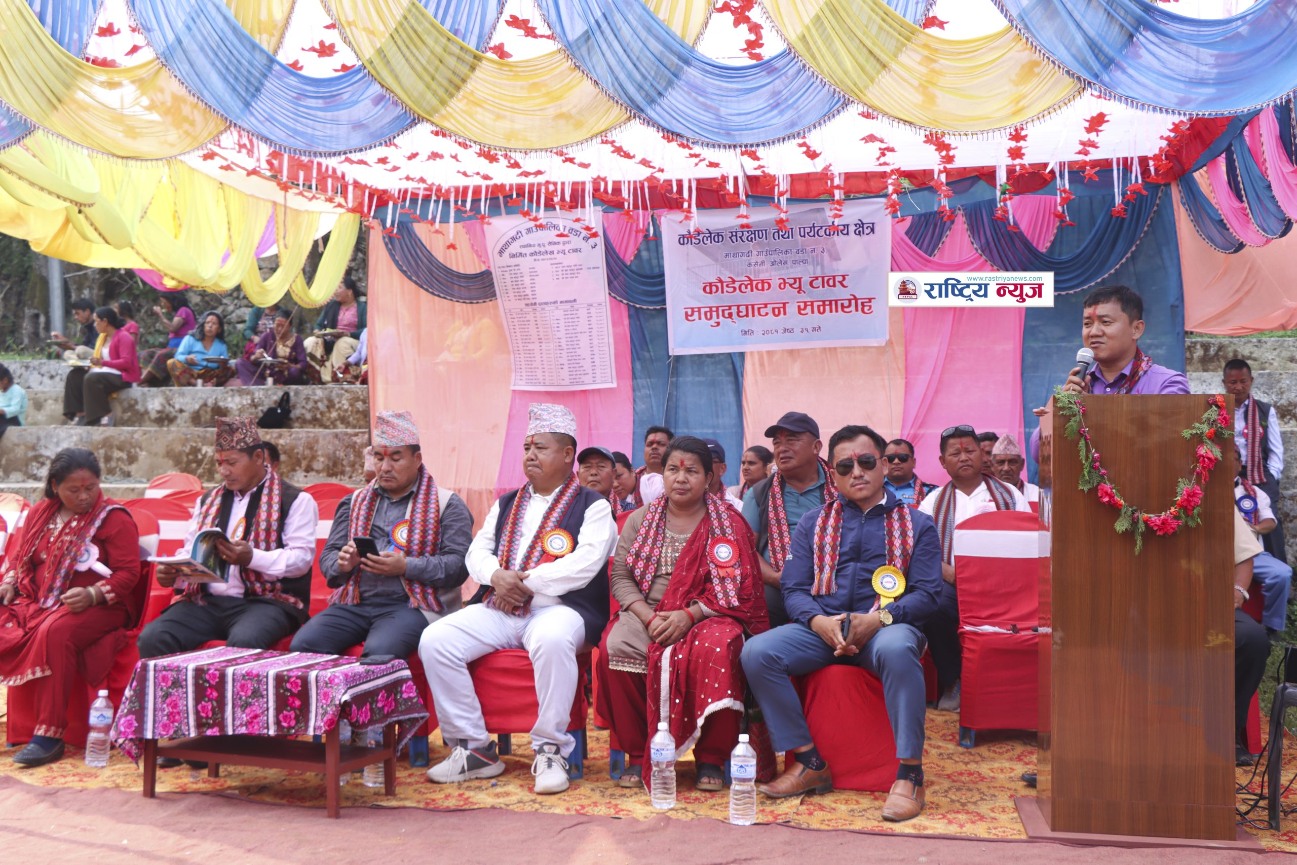 कार्यक्रममा निर्माण समितिका सचिव ज्ञानबहादुर चिदीले भ्यु टावर निर्माणका लागि १३ लाख ७७ हजार रुपियाँ संकलन भएको जानकारी दिनुभयो । कार्यक्रममा समाजसेवी जनकराज शर्मा, दिव्य ज्योति माविका पूर्व प्रअ नारायणप्रसाद अधिकारी, जगतबहादुर थापा, टोल संयोजक खुमबहादुर सुर्यबंशीलगायतले आ–आफ्नो धारणा राख्नुभएको थियो । कार्यक्रम निर्माण समितिका अध्यक्ष डुबलसिंह आलेको अध्यक्षता, उपाध्यक्ष टोपबहादुर सारुको स्वागत र शिद्धबावा प्राविका पूर्व प्रअ कृष्ण रानाको संचालनमा सम्पन्न भएको हो ।